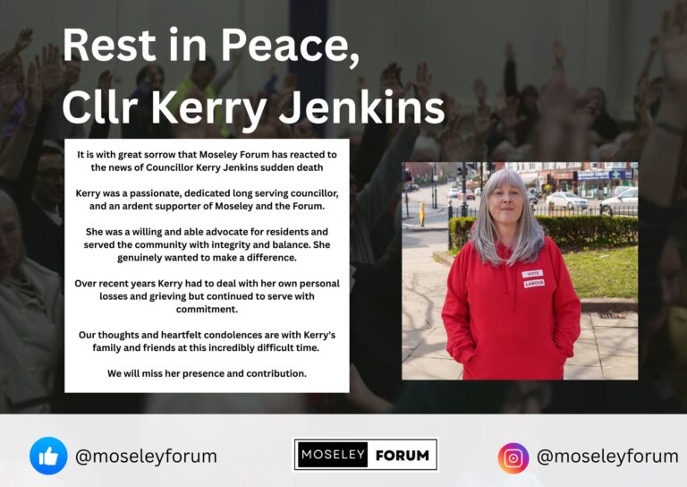 Kerry was a passionate, dedicated long-serving councillor, and an ardent supporter of Moseley and the Forum.